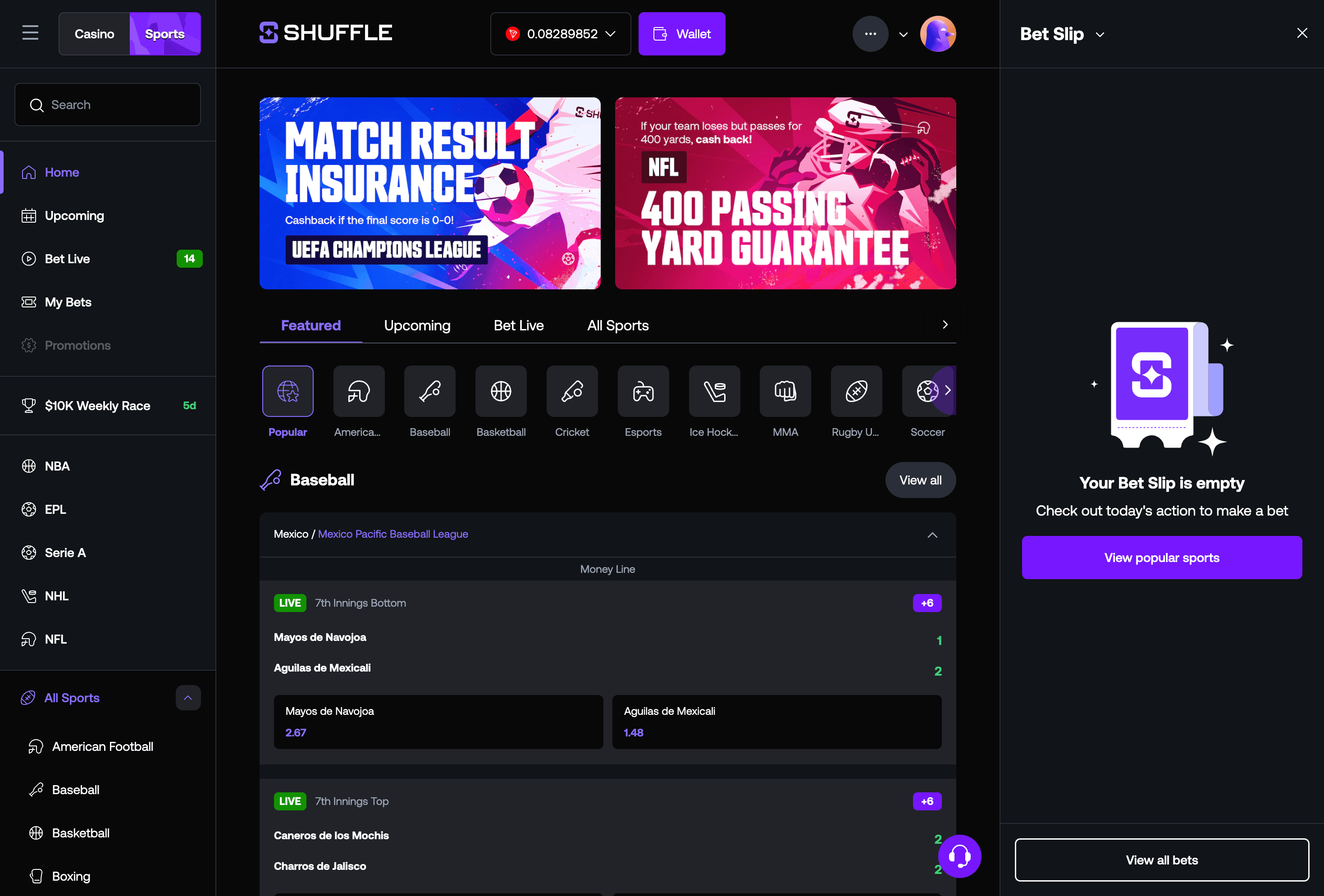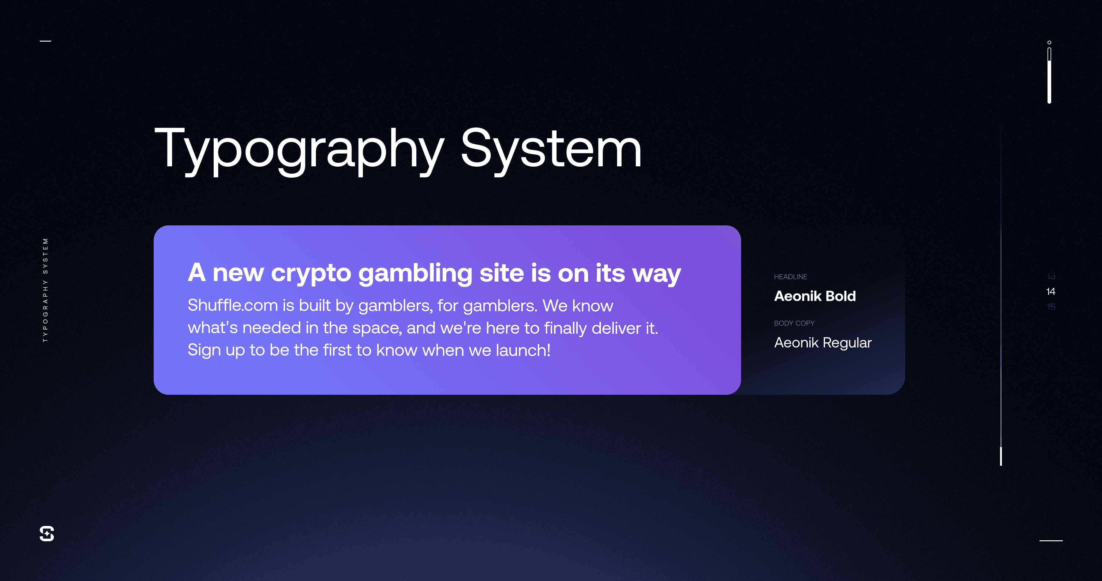 When Shuffle reached out initially, their platform was well underway but unfortunately the platform aesthetic wasn’t quite landing how they intended. When they got their logo developed it was presented with a traditional green and gold casino look that didn’t achieve the modern wow factor they set out to capture. As a result, the branding deck was then handed over to the UI team and it was clear they were stuck within the confines of the previous look and needed feedback on where to pivot.